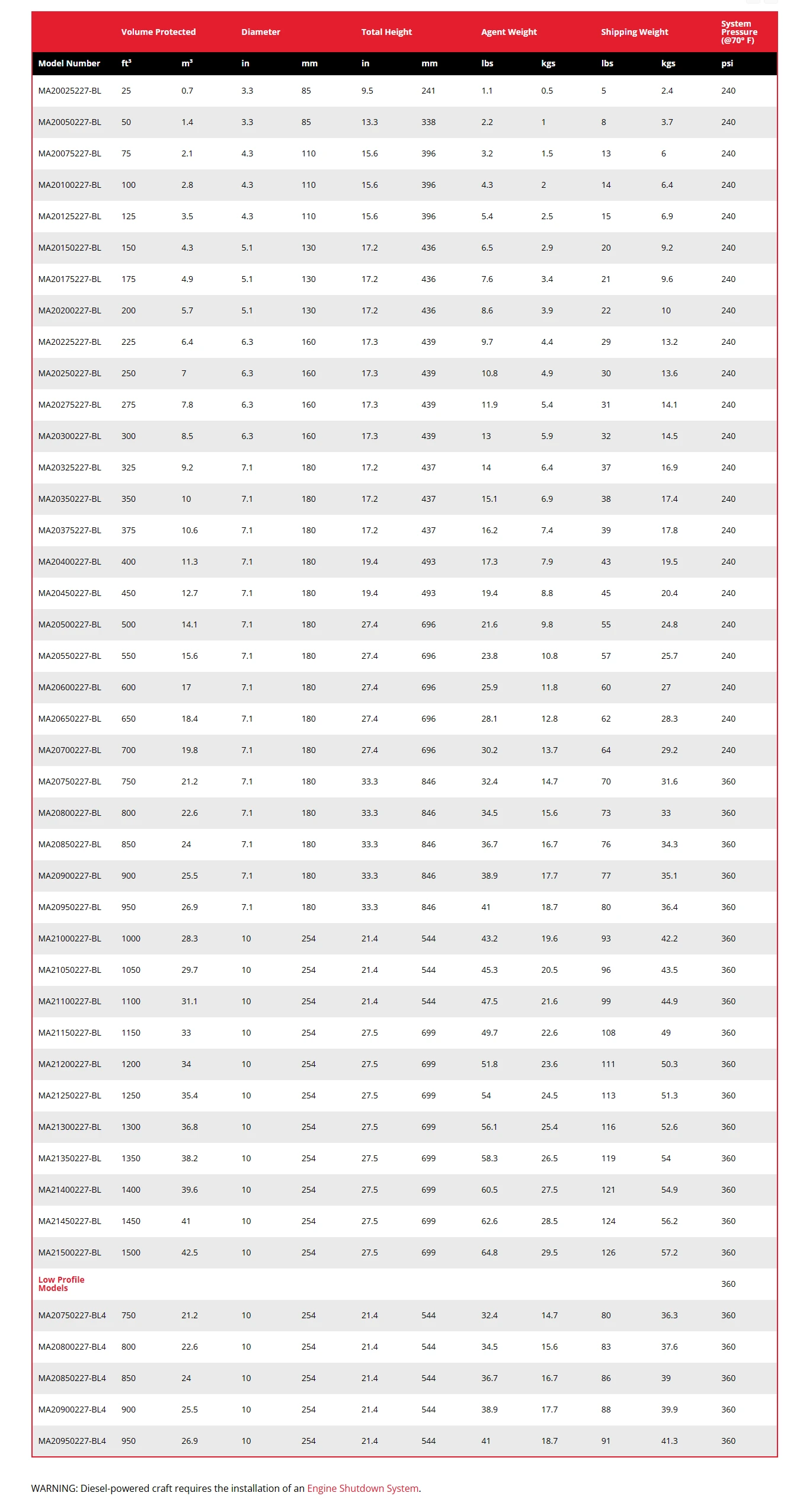 MA2 Systems available from 25 to 1,800 cu. ft. Protected Volume.